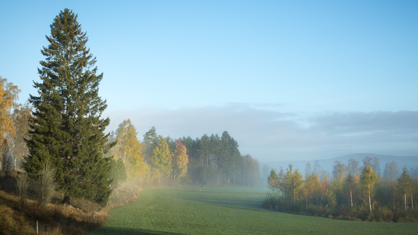 I fredags var det mycket dimma häromkring. Solen bröt genom lite ibland. Det gav fint ljus i landskapet.